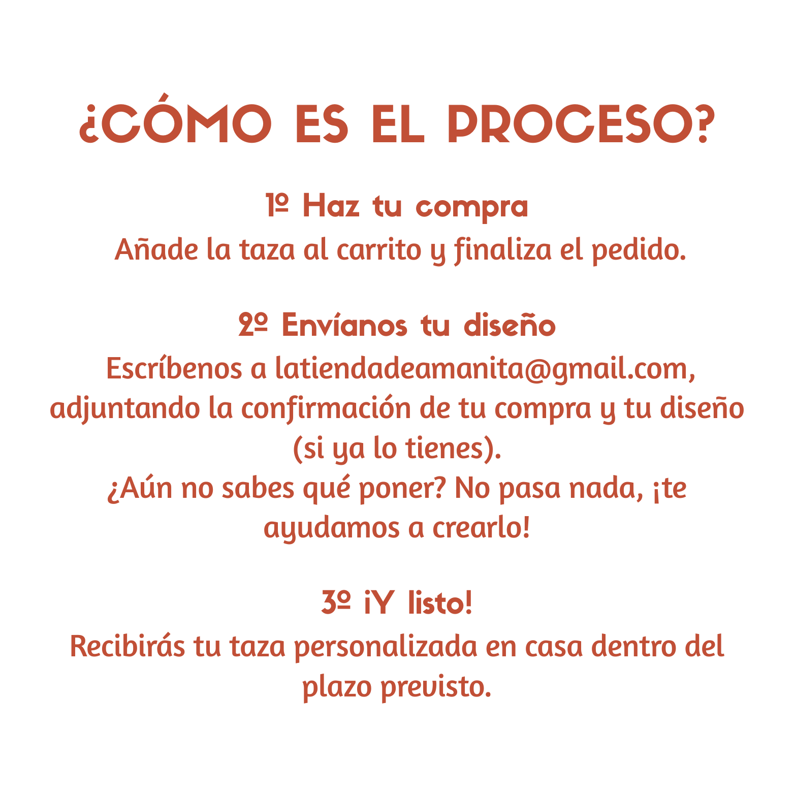¿Buscas una taza personalizada para regalar o para ti? Esta taza personalizable es perfecta para transformar una idea en un objeto cotidiano lleno de valor. Puedes añadir tu propio diseño, una foto especial, una ilustración o una frase que lo diga todo.
