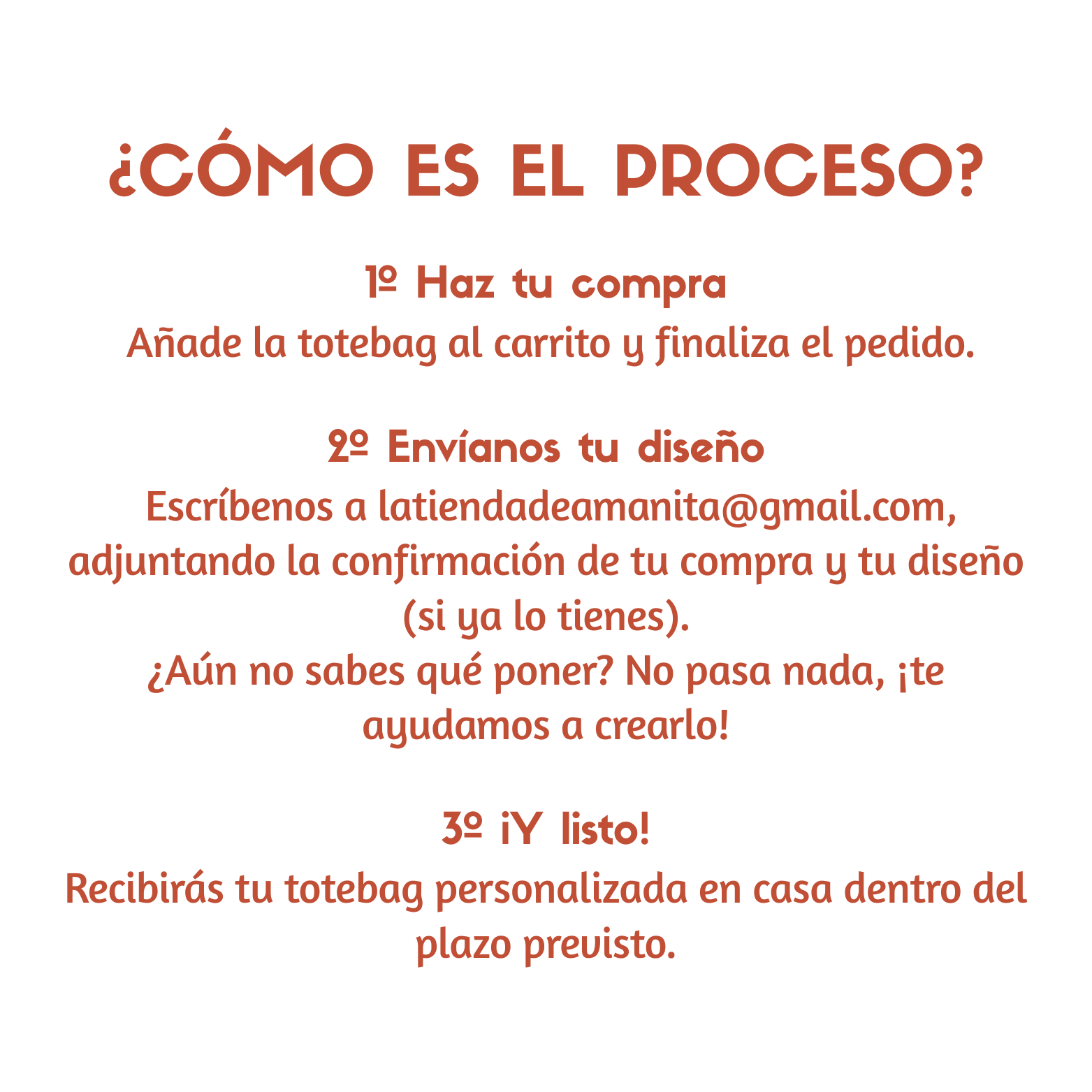 ¿Quieres una bolsa que diga lo que tú quieras? Esta tote bag personalizable es perfecta para llevar contigo tu estilo, tu frase favorita o tu ilustración más original. Hecha de algodón resistente y cómoda de llevar, es el lienzo ideal para dejar volar tu creatividad.